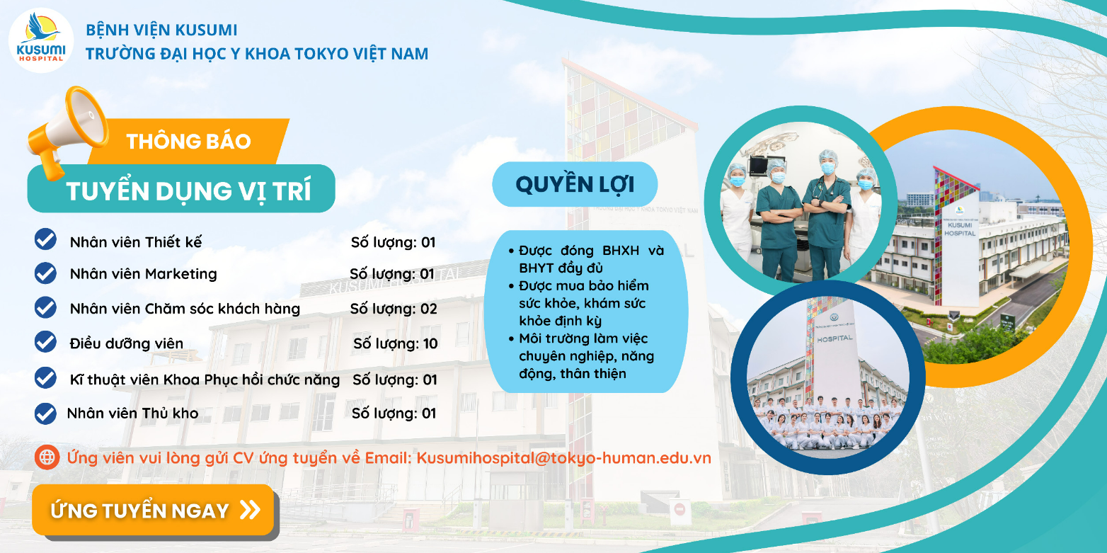 THÔNG BÁO TUYỂN DỤNG TỪ BỆNH VIỆN KUSUMI – CƠ HỘI VIỆC LÀM CÓ 1-0-2 TẠI MÔI TRƯỜNG CHUYÊN NGHIỆP CHUẨN NHẬT
